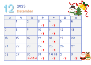 【1月24日(土)は臨時休業させていただきます】1月営業カレンダー