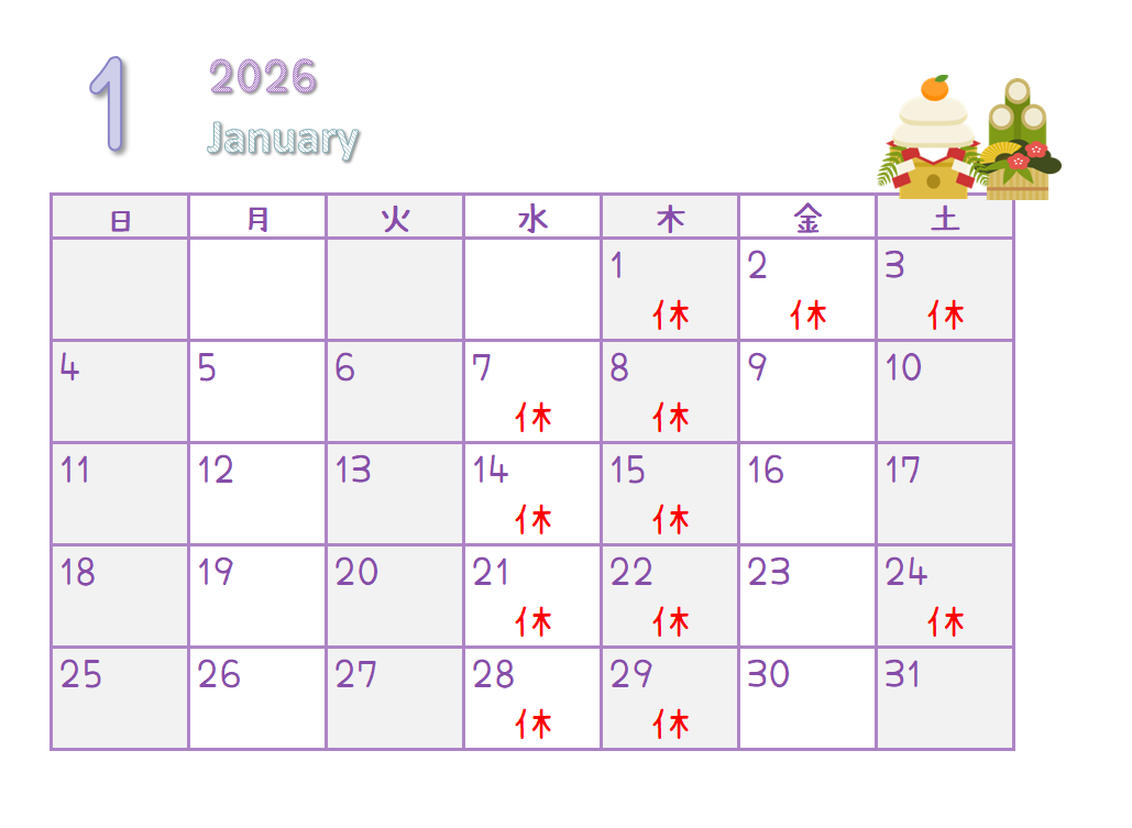 【1月24日(土)は臨時休業させていただきます】1月営業カレンダー
